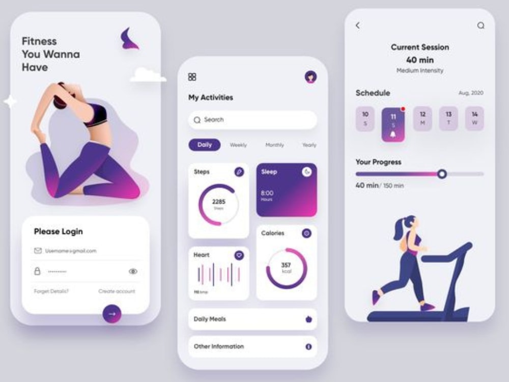 Signup/login, basic health info, fitness goals